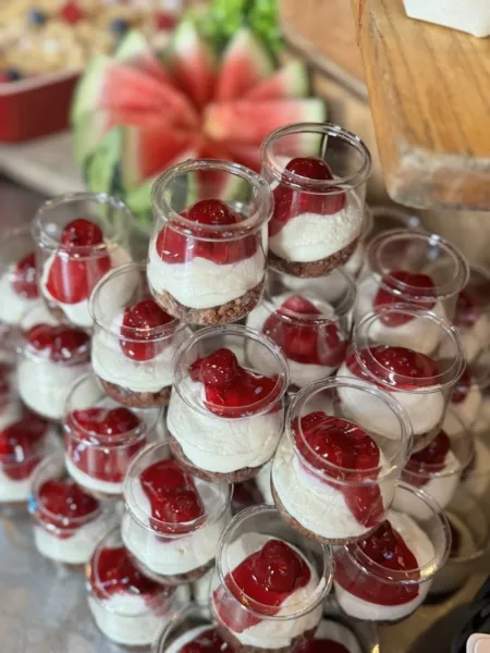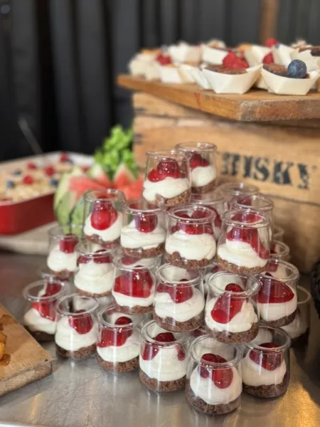 Alle desserts worden verzorgd gepresenteerd, zodat je gasten zelf hun favorieten kunnen kiezen en het buffet een feestelijke beleving wordt. Perfect als zoete afsluiter bij je BBQ.