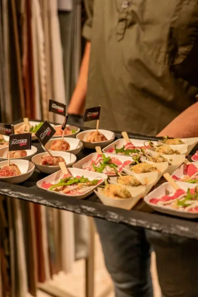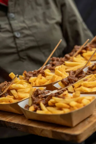 Het assortiment bestaat uit een mix van toegankelijke favorieten en luxere gerechten. Denk aan onder andere verse friet met Zeeuws stoverij, een portie luxe saté, ribs & wings, zalmhapjes et cetera. Maar ook bieden we andere verfijnde en exclusieve opties, zoals: sukadesteak ‘tataki style’, broodje Black Angus burger, loaded fries en pork belly burnt ends. De exacte samenstelling stemmen we altijd af op uw evenement en gasten.