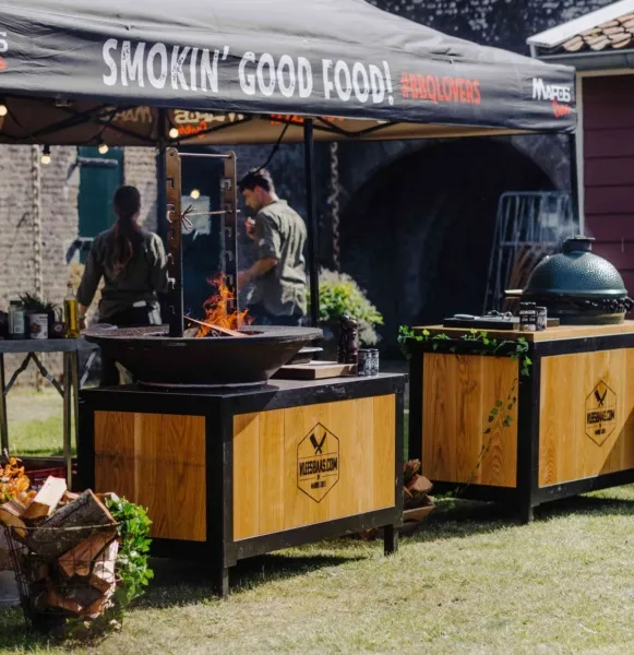 Op ons sfeervol aangeklede barbecueplein kunnen gasten verschillende kleine, verfijnde gerechtjes afhalen. Alles wordt live bereid op onze speciale barbecues (Big Green Eggs en Ofyrs), waarbij vuur, ambacht en presentatie samenkomen. De gerechten worden geserveerd in kleine porties, zodat uw gasten kunnen genieten van een gevarieerd en dynamisch aanbod.