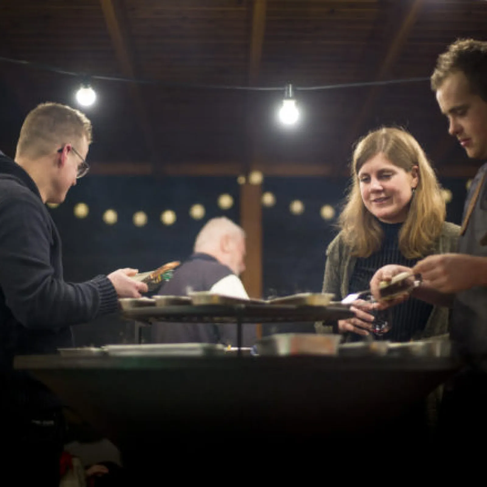 Wat deze barbecue extra bijzonder maakt, is de winterse aankleding en sfeer. Wij creëren een warm barbecueplein met vuur, sfeerverlichting en decoratie die uitnodigt om samen te komen. Een setting waarin gasten graag blijven staan, genieten en opwarmen rondom het vuur.