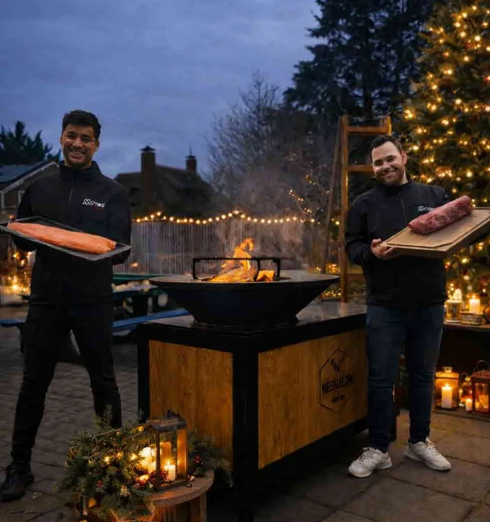 Vuurmeesters staat voor kwaliteit, vakmanschap en een ontspannen culinaire beleving rond open vuur, volledig afgestemd op jouw winterse evenement.