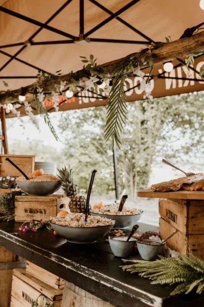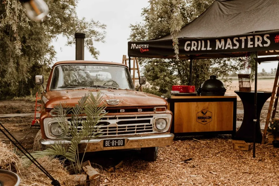 Op hun bijzondere trouwdag kozen Arjan en Alinda voor een buffetstyle BBQ van Vuurmeesters. Het barbecueplein werd volledig aangekleed met sfeervolle details, passend bij de romantische setting van hun bruiloft, zodat zowel het eten als de uitstraling helemaal klopten.