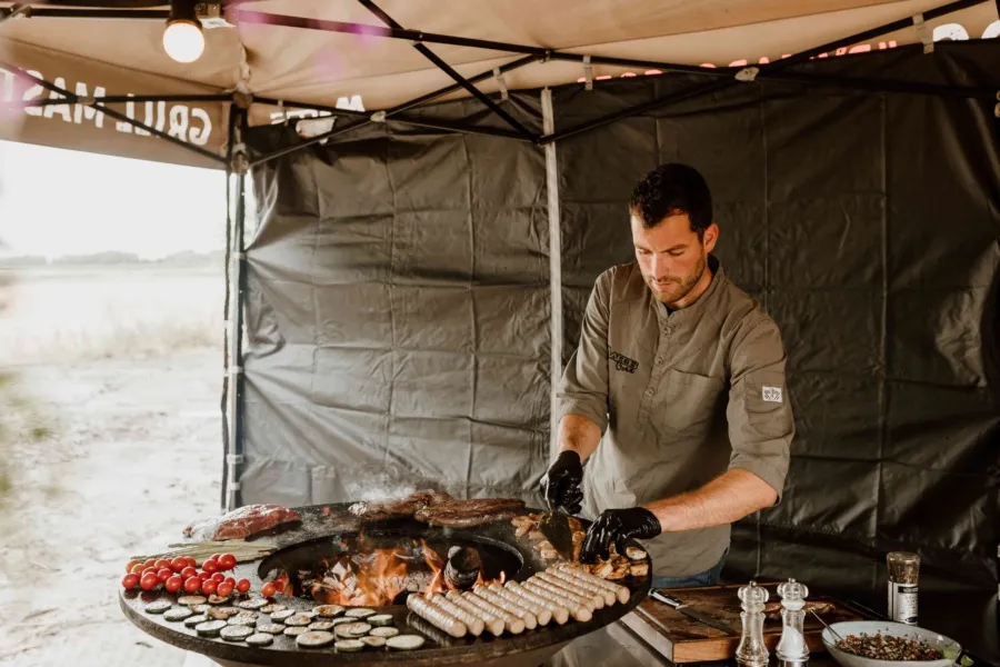 Onze Vuurmeesters gingen aan de slag op de Big Green Eggs, OFYR’s en de BBQ-truck met Afrikaanse braai. Ze bereidden een gevarieerd assortiment van verse vlees- en visgerechten, direct op het bord geserveerd. Daarbij werden ook diverse frisse salades en ambachtelijk brood geserveerd, zodat voor ieder wat wils was.