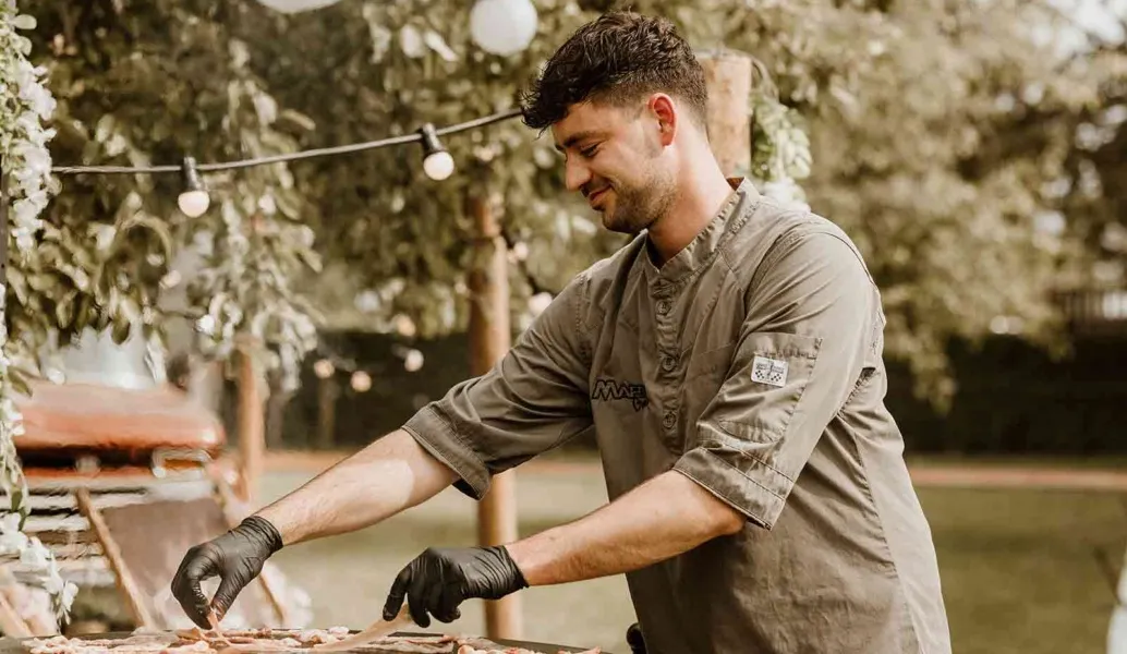 Op deze prachtige trouwdag kozen Dirkjan en Matthea voor een exclusieve buffetstyle barbecue van Vuurmeesters. Het barbecueplein werd volledig aangekleed in een warme en stijlvolle sfeer, passend bij de setting en het karakter van hun bruiloft. Zo klopte niet alleen het eten, maar ook de uitstraling van de avond.