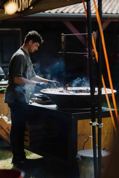 - Ervaren BBQ-specialisten: onze Vuurmeesters zijn experts in garen, grillen en roken op de Big Green Egg, OFYR of onze eigen braai-truck. Natuurlijk kan het ook gewoon op een traditionele BBQ!