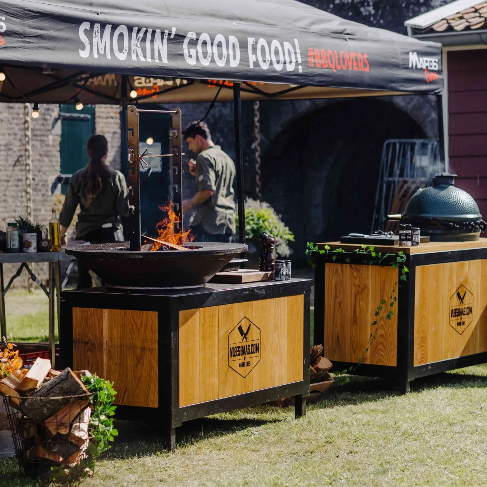 Wij verzorgen de complete BBQ-catering voor groepen vanaf 40 personen. Daarnaast bieden onze Vuurmeesters stoere live-grills op de Big Green Egg, OFYR of klassieke kolen-bbq’s. Zo kan je zelf zien en ruiken hoe wij langzaam garen, grillen en roken. Daarbij bieden wij, naast de vlees- en visarrangementen, diverse extra mogelijkheden, zoals drankjes, een bar, een dessertbuffet, meubilair of een cocktailbar. Bekijk hier alle mogelijkheden!